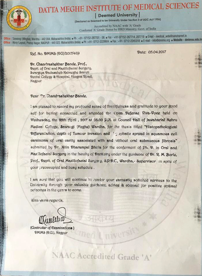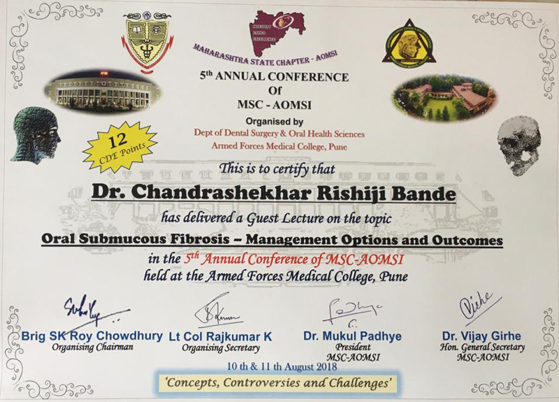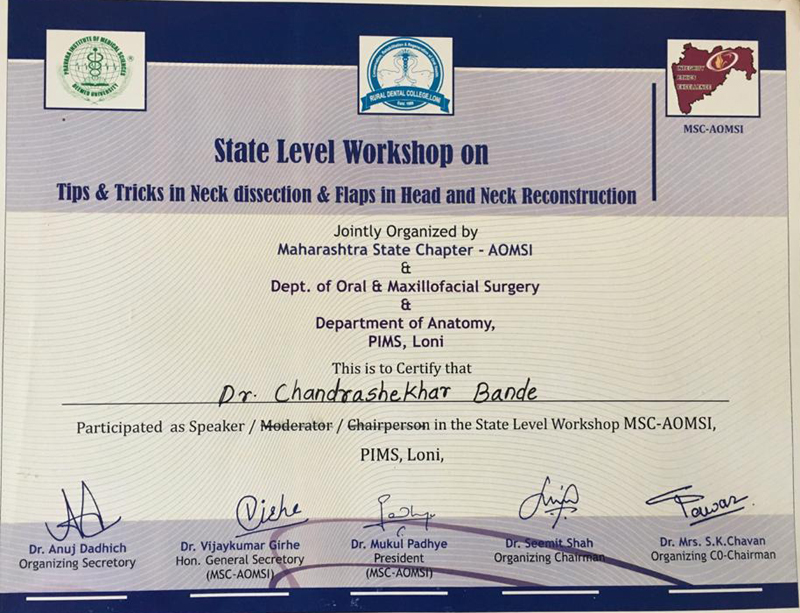 - Active participation in various Scientific National, International, and Local conferences and workshops focusing on Oral Cancer and Maxillofacial Surgery.